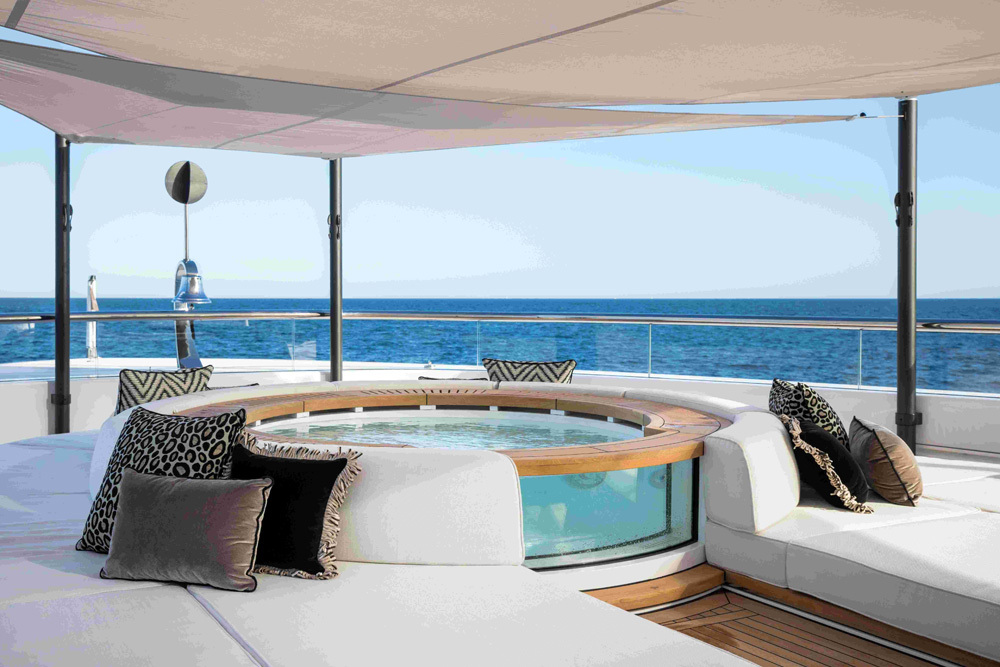 Those pools expand on the infinity pool offered as part of the stunning Oasis Deck® aft, to include a spa pool on the hidden observation deck atop the yacht and a 40-centimetre-deep reflecting pool at the bow on the owner’s deck with waterfall effect flowing aft.