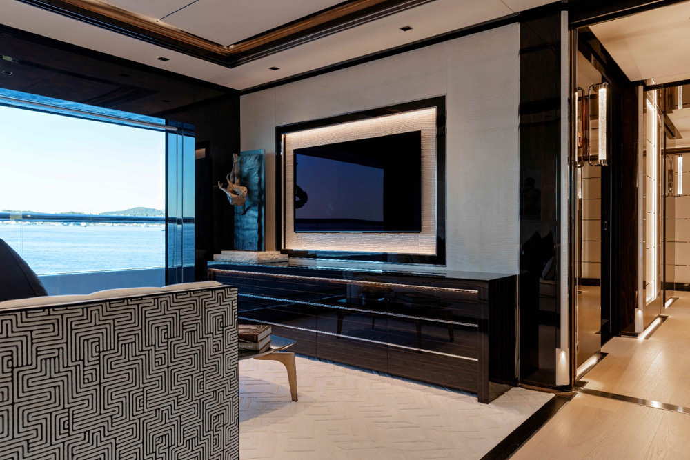 The entire process was also underpinned by close collaboration between designers and the Benetti team who would come back with ideas for particular veneers that would be a good match for the overall style. That’s what brings the entire design to a different level, along with details from metal inserts that form a running motif, and boiserie panels, all of which are difficult to make with the woods the design uses.