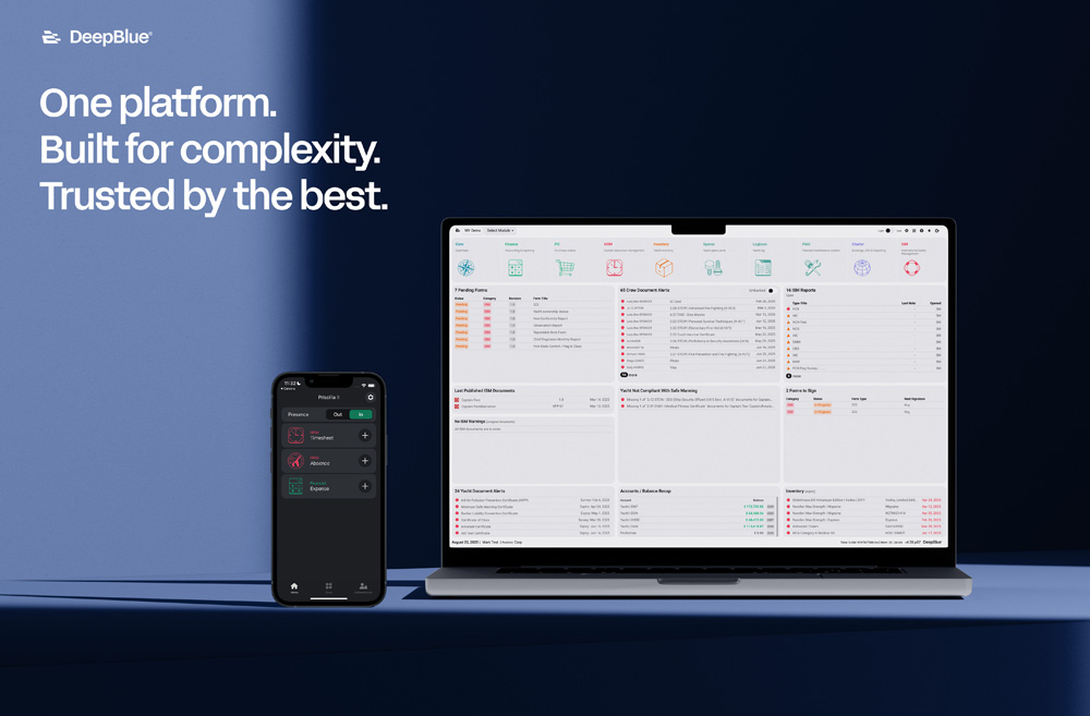 That’s the philosophy behind DeepBlue, a modular yacht management platform that’s been quietly evolving for more than 15 years. Built as a single environment where data flows naturally between departments, vessels, shore side activities, and management, it’s been shaped by the crews, engineers and managers who live with it every day, not just by developers in a meeting room.