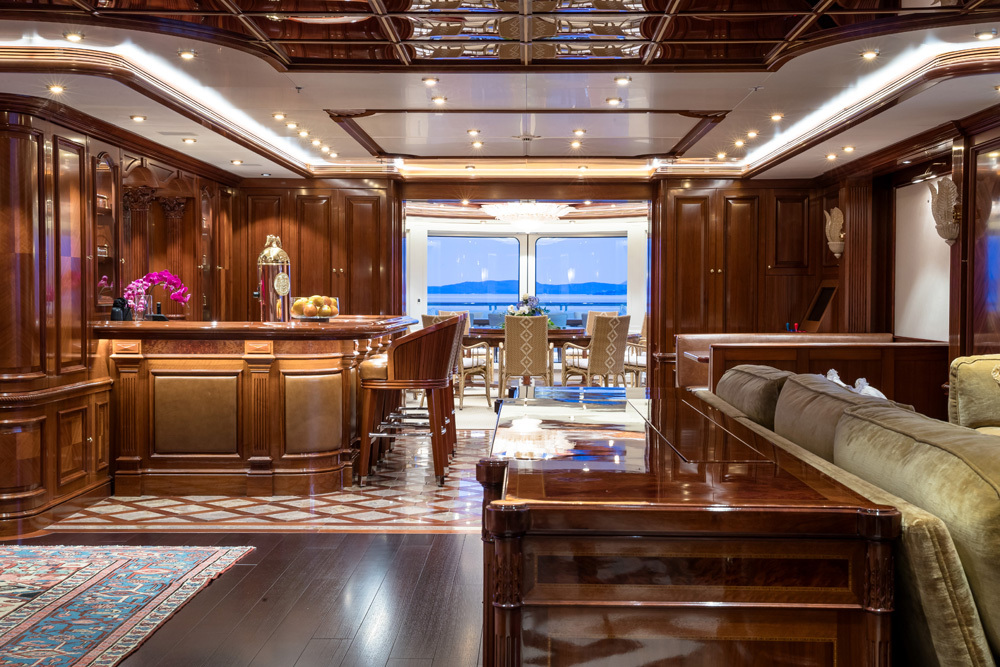 Lürssen-built STARFIREThroughout her five expansive decks, STARFIRE showcases craftsmanship and elegant design. Soaring ceiling heights, luxurious wood finishes, and opulent and approachable spaces complement her timeless interior by François Zuretti. The yacht offers seven dining locations, from formal indoor settings to casual outdoor nooks, including the observation lounge with endless panoramic views. She features a main deck owner’s suite with a private gym, office, spa-like marble bathroom, and a personal forward-facing lounge for complete seclusion. On the bridge deck, a junior master provides stunning views and a sitting area, while the lower deck houses four VIP cabins with king beds, two of which include Murphy beds for maximum flexibility. A twin bunk cabin offers additional space ideal for children or staff.