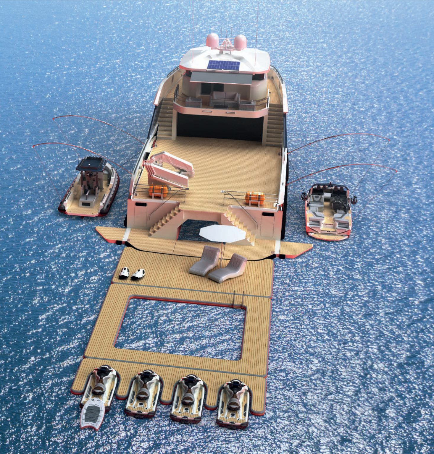 Ever needed more legroom onboard? The superyacht toys and inflatables manufacturer Superyacht Inflatables is the expert when it comes to kitting out your superyacht and now, they have an even bigger and more awesome range of environmentally friendly custom inflatables to take your time onboard to the next level. Envisage a completely customisable super dock set up that can accommodate all your toys and tenders at the same time, while providing ample leisure space on the water for effortless indoor-outdoor living and entertaining.